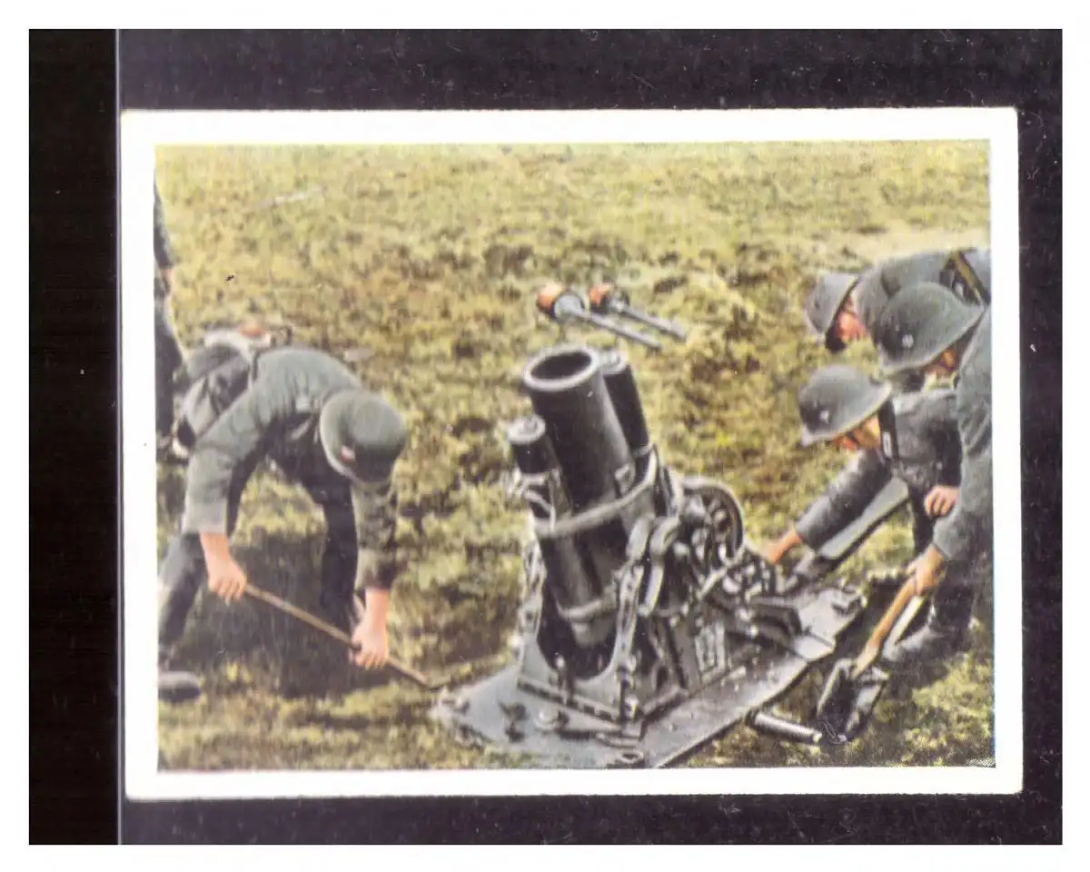 Freie Beschreibung: Dt.- Reich (009985) Sammelbild Eckstein, Die Deutsche Wehrmacht, Bild 59, Mittlerer Minenwerfer im Feuer