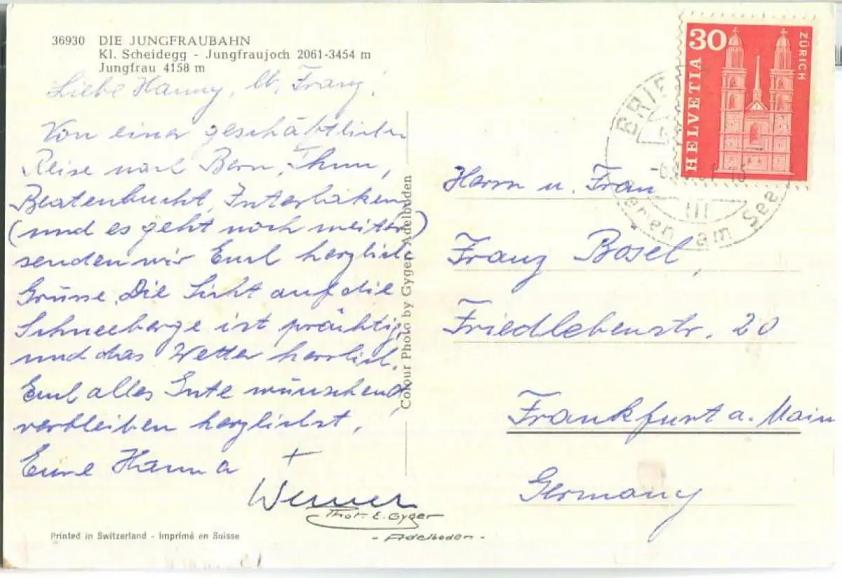 Die Jungfraubahn - Verlag Gyger Adelboden - leichte Gebrauchsspuren (E90137) gel. 1961