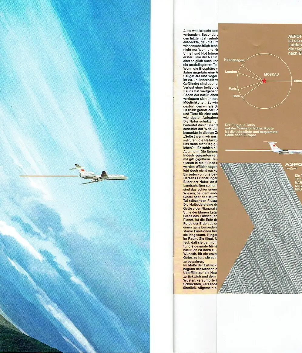 sehr guter Zustand, geringe Gebrauchs- und Alterungsspuren, Werbeprospekt der Aeroflot für den Naturschutz, Softcover, ca. 14,5 x 29,5, 14 Seiten mit 14 Bildern