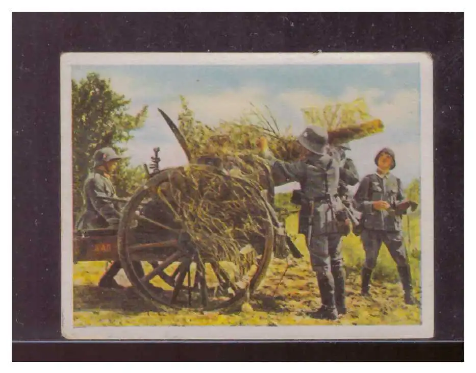 Freie Beschreibung: Dt-Reich (009315) Sammelbild Die deutsche Wehrmacht, Haus Bergmann, Bild 88, Geschütz wird getarnt