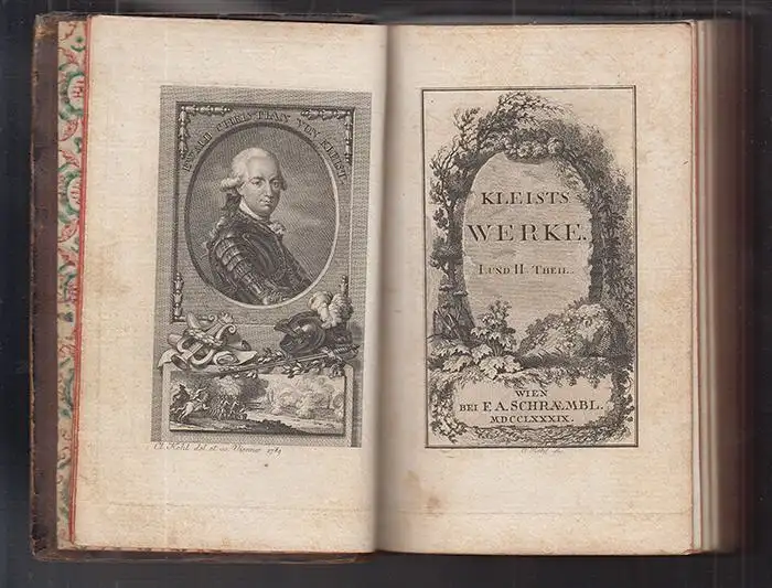 Wien, Schrämbl 1789. 2 Teile in 1 Bd. kl.-8°. XXXII S., 3 Bll., 281 S., 11 Bll. (Varianten). Mit Titelportr. u. 1 gest. Titel. Ldr. d. Zt. Einbd. berieb.