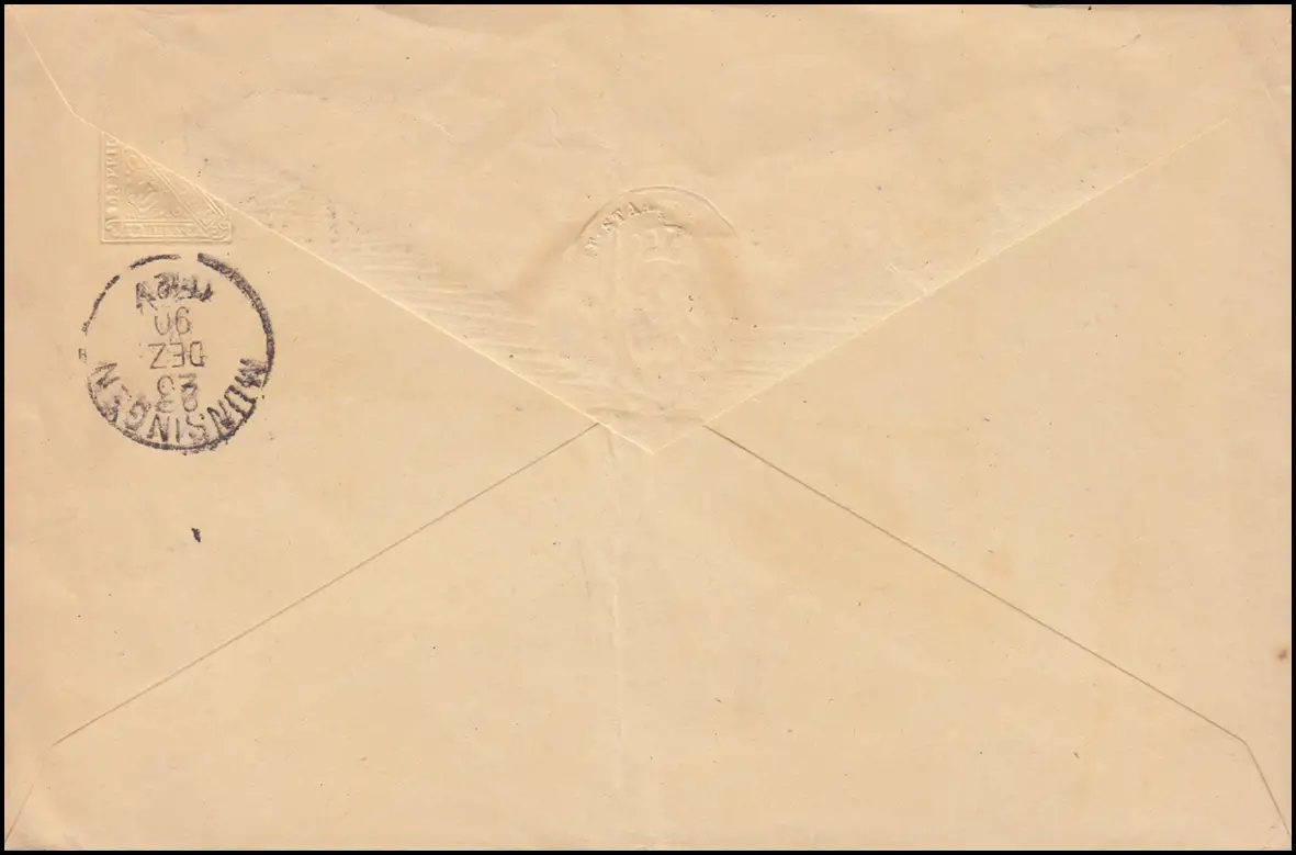 Dienstumschlag DU 13 A I b von ULM STADTPOSTBUREAU 22.12.90 n. MÜNSINGEN 23.12.
