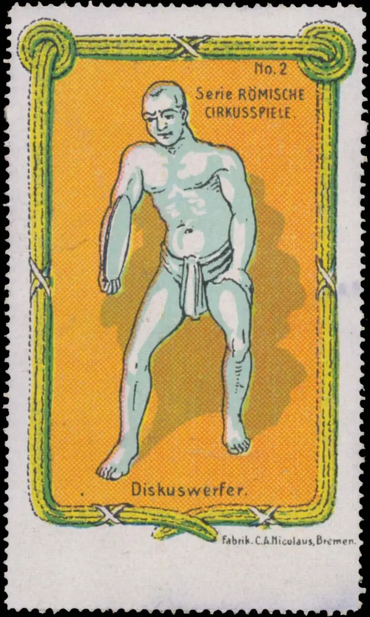 Sport, Serie: Römische Cirkusspiele, No. 2, Druck: C.A. Nicolaus, Bremen, Größe/Zustand: 7x4 , leicht fleckig, Original alte Reklamemarke die seinerzeit für die Werbung benutzt wurde