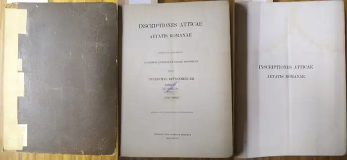 Titel: Inscriptiones Atticae aetatis Romanae Pars Prior. Consilio et auctoritate Academiae litterarum regiae Borussicae edidit G. Dittenberger. Additae Sunt Tabulae Quinque lithographicae. (= Corpus Inscriptionum Atticarum consilio et auctoritate Academiae litterarum regiae Borussicae editum. Voluminis tertii pars prior)