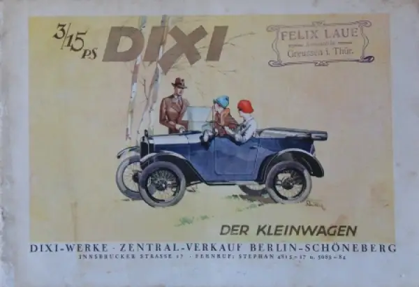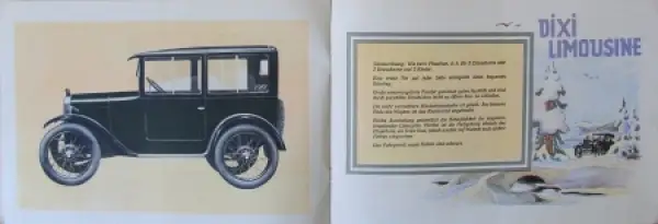 Dixi 3/15 PS Modellprogramm 1928 "Der Kleinwagen" Reuters-Motive Automobilprospekt (8540)