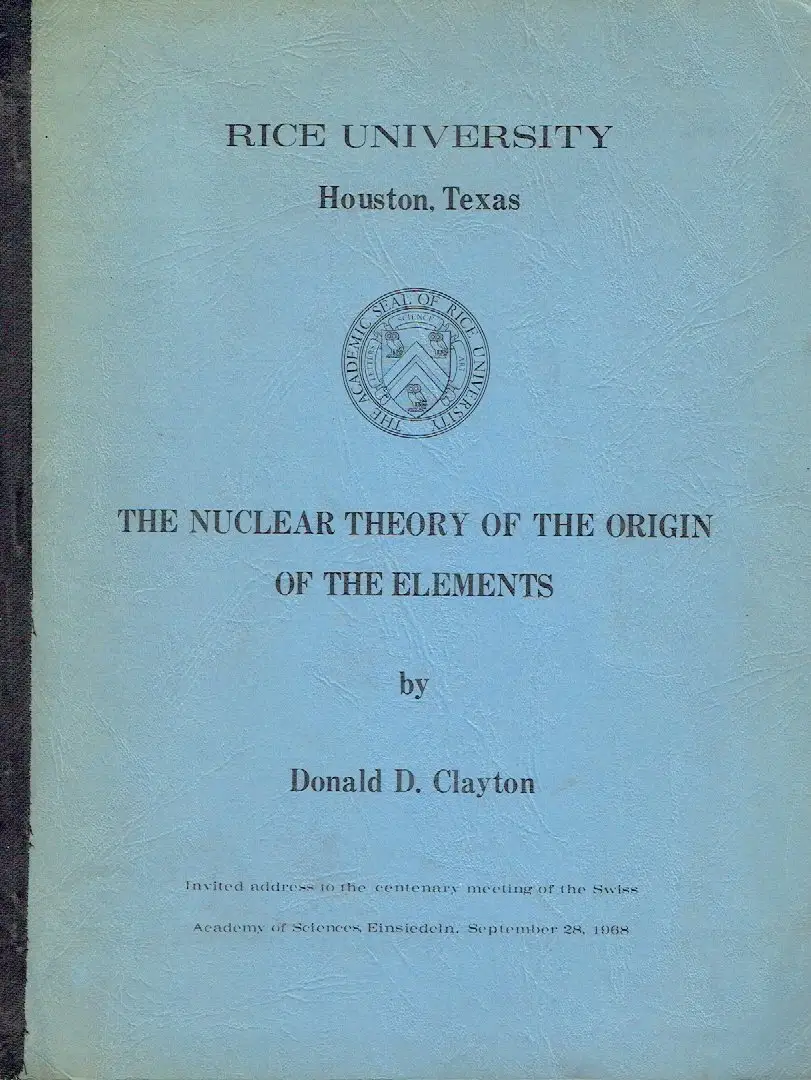 Donald D. Clayton: The Nuclear Theory of the origin of the Elements.