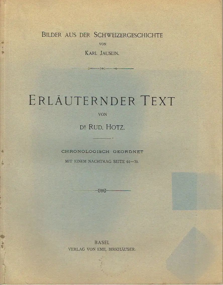 Dr. Rud. Hotz: Erläuternder Text zu Bilder aus der Schweizergeschichte von Karl Jauslin.