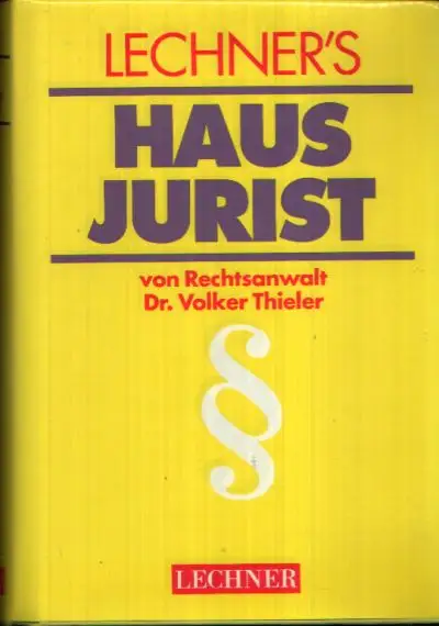 Lechner`s Hausjurist; Ein Rechtslexikon für den Alltag; Dr. Thieler, Volker; Recht; Allgemeine Rechtsbegriffe; Unsere wichtigsten Rechtsgrundlagen; Wer kann die Rechte geltend machen; Personenrechte; Sachenrechte; Charakteristik eines Rechtsgeschäftes; Verträge im Alltag; Vertragsarten und Vertragsinhalte; Rechtsprobleme vor Vertragsabschluss; Unser recht im Alltag; Familienrecht; Nichteheliche Lebensgemeinschaft; Erbrecht; Arbeitsrecht; Strafrecht; Straßenverkehrsrecht; Rechte und Pflichten bei der Tierhaltung; Dauerschuldverhältnisse; Besitz, Eigentum und Schulden; Wohnungseigentumsrecht; Schadenersatzansprüche; Handelsrecht; Handelsrecht und seine Vorschriften; Handelsgesellschaften; Kaufmännische Hilfsgewerbe; Handelsgeschäfte; Scheck- und Wechselrecht; Das öffentliche Recht; Der Weg zum Recht; Selbsthilfe; Einstweilige Verfügung; Gerichtliches Mahnverfahren; Zivilprozess; Strafprozess; Rechtsmittel; Besondere Prozessverfahren; Unsere Rechte gegenüber dem Staat; Wahlrecht; Beschwerde- und Petitionsrecht; Verfassungsbeschwerde