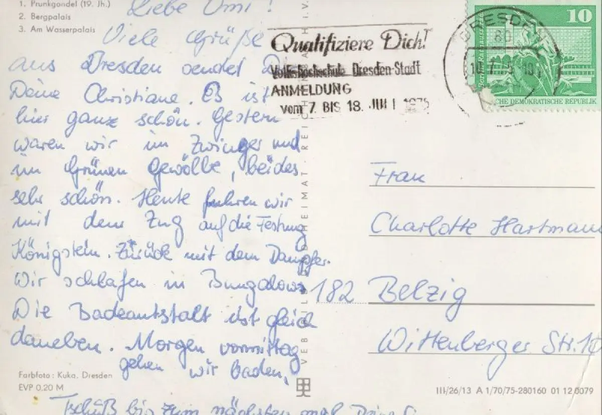 Postleitzahl:01326 (neu) / O 8000 (alt)