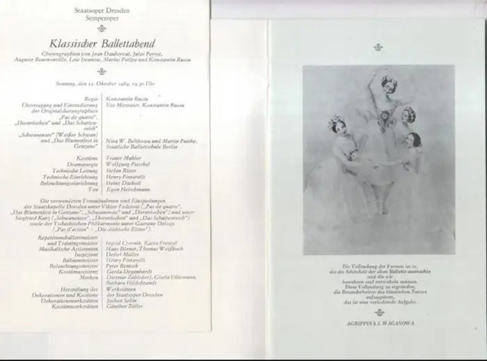 Dresden, Staatsoper. - Intendant: Gerd Schönfelder: Programmheft zu: Klassischer Ballettabend. Sonntag, den 22. Oktober 1989. - Choreographien: Jean Dauberval, Jules Perrot u. a. - Regie: Konstantin Russu. - Mitwirkende: Ina Meinhold, Hannes-Detlef Vogel-