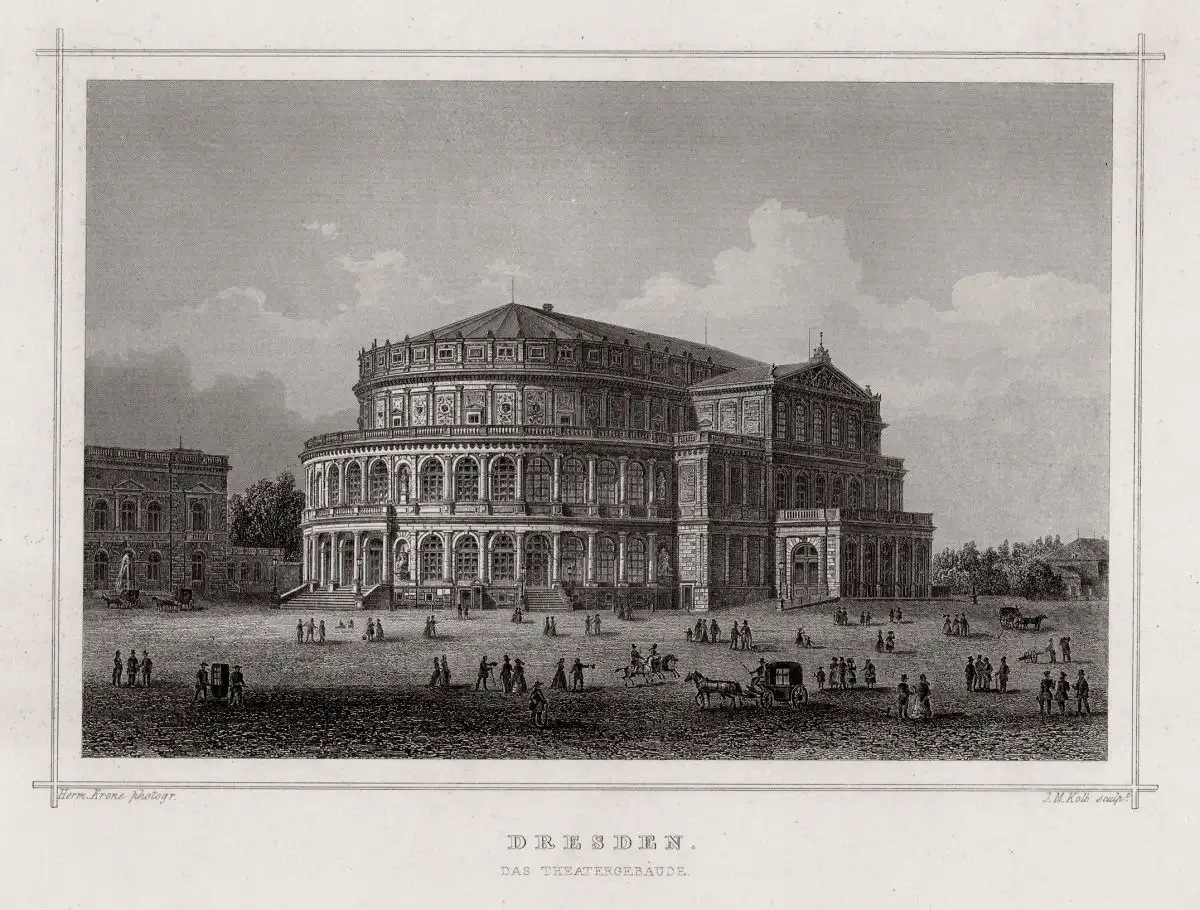 Dresden: Theater (Semperoper) Originaler Stahlstich um 1870