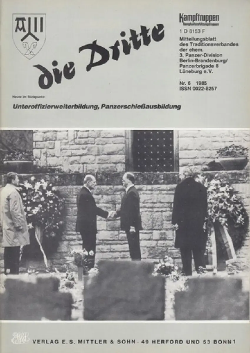 Titel: die Dritte. Jahrgang 34, 1985, Nr. 6. Mitteilungsblatt für die Angehörigen der ehemaligen 3. Panzer-Division Berlin-Brandenburg. Unteroffizierweiterbildung, Panzerschießausbildung