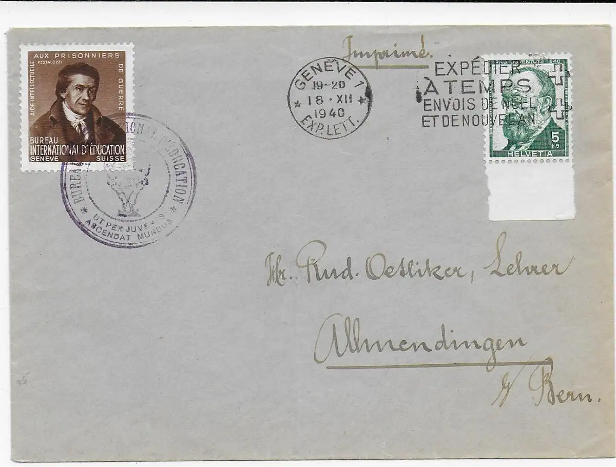 Drucksache Genf nach Allmendingen/Bern, 1940, Ballonpost Stempel