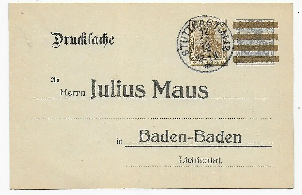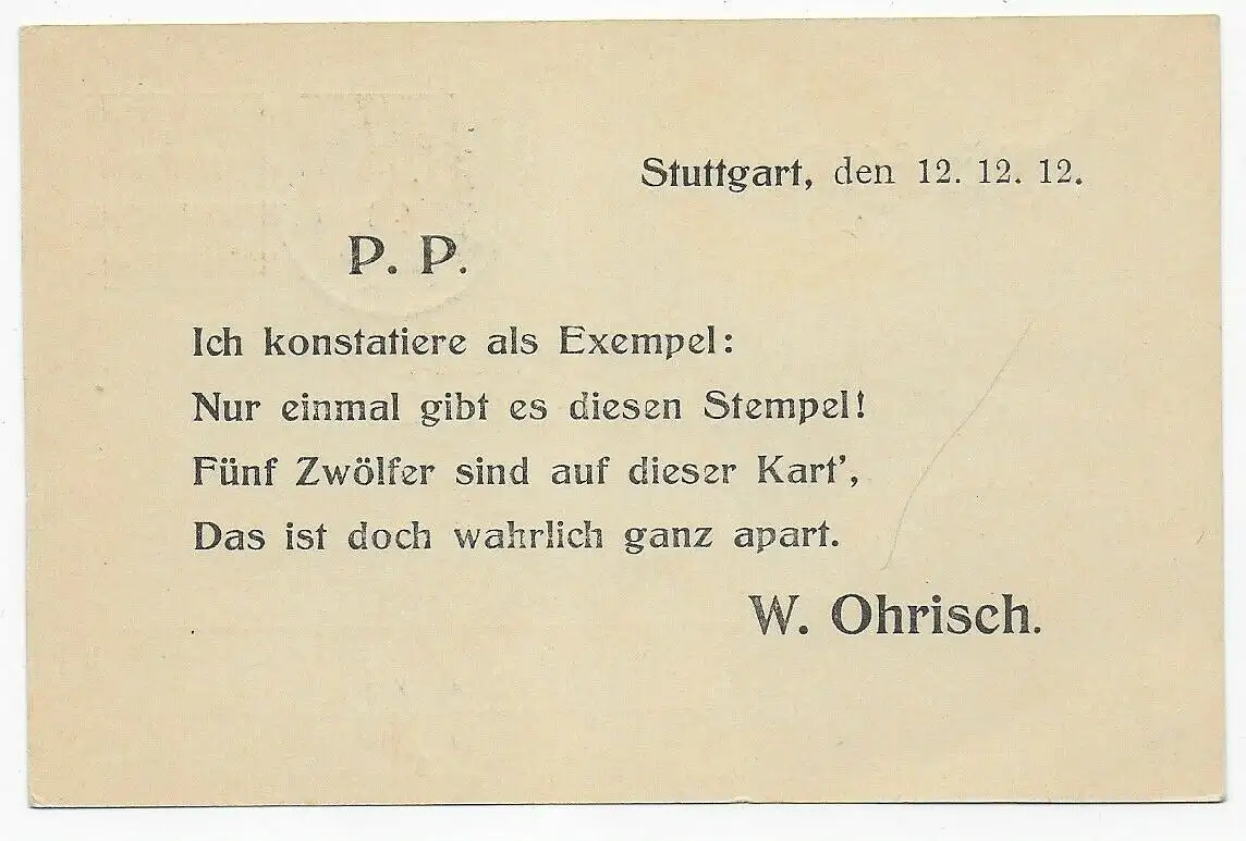 Drucksache Postkarte Stuttgart nr. 12: vom 12.12.12 mit nettem rücks. Spruch