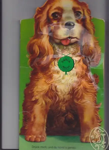 Bemerkungen: Im vorderen Innendeckel - unter dem Bauch des abgebildeten Hundes - befindet sich ein Mechanismus der ein Bell-Geräusch auslöst.