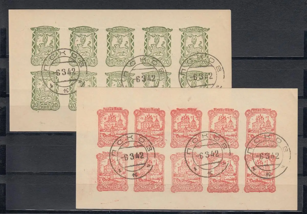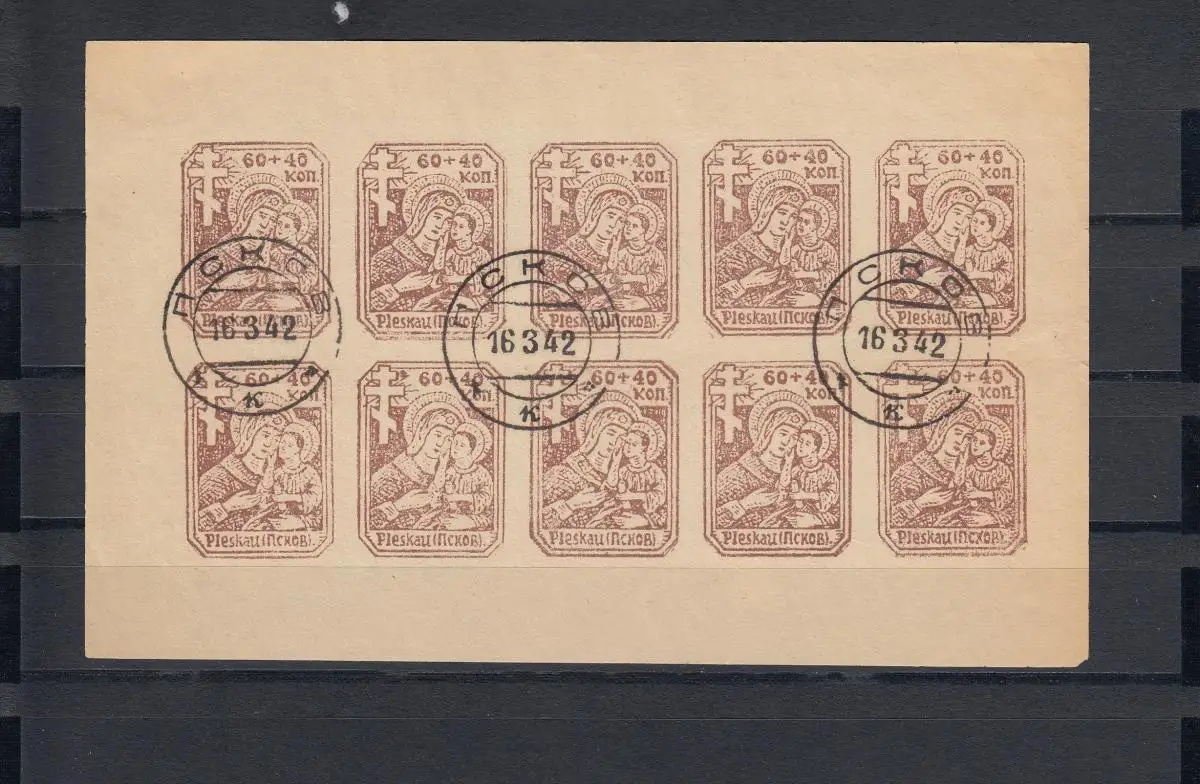 Dt. Besetzung Russland: MiNr. 14-16 - Kleinbogen, gestempelt mit Plattenfehler