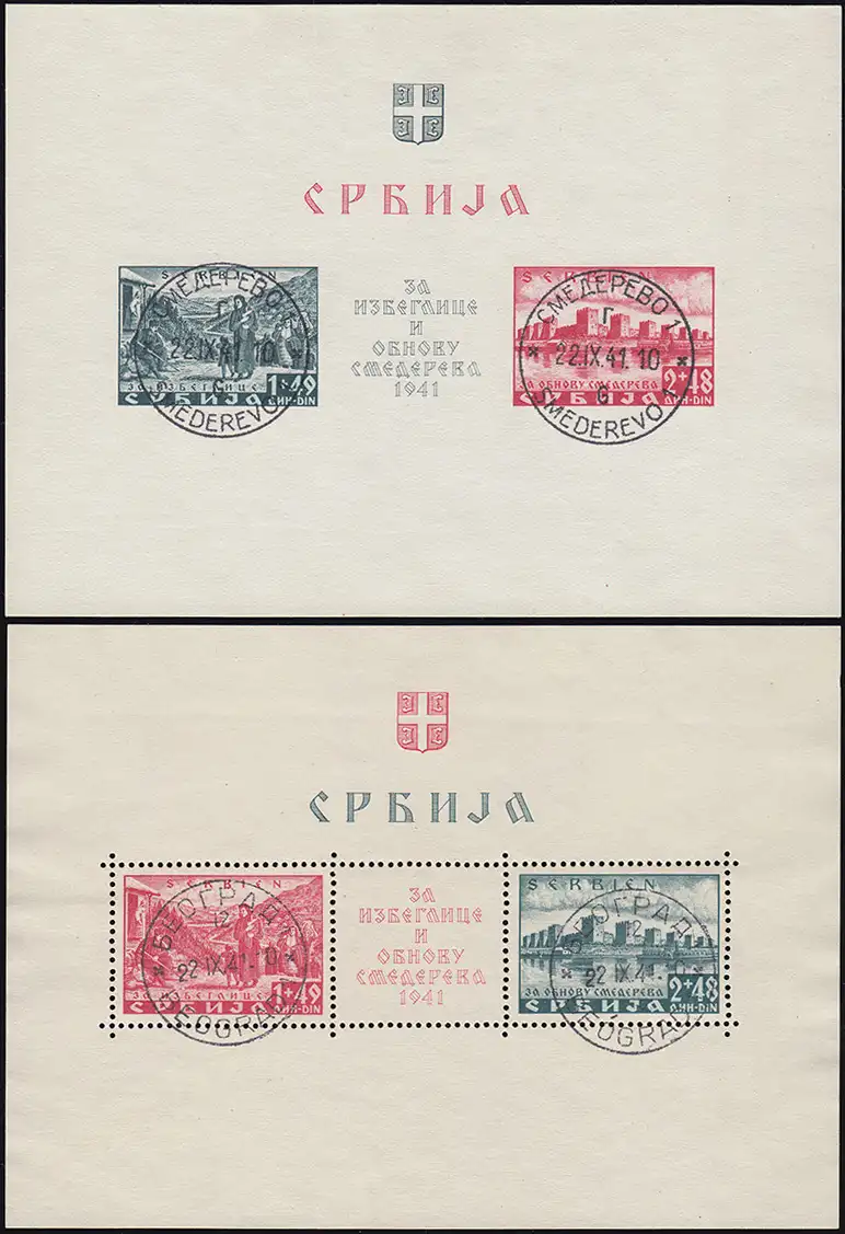 Dt. Besetzung Serbien Bl. 1 und 2 - Blockpaar Semendria, Stempel OHNE OBLIGO
