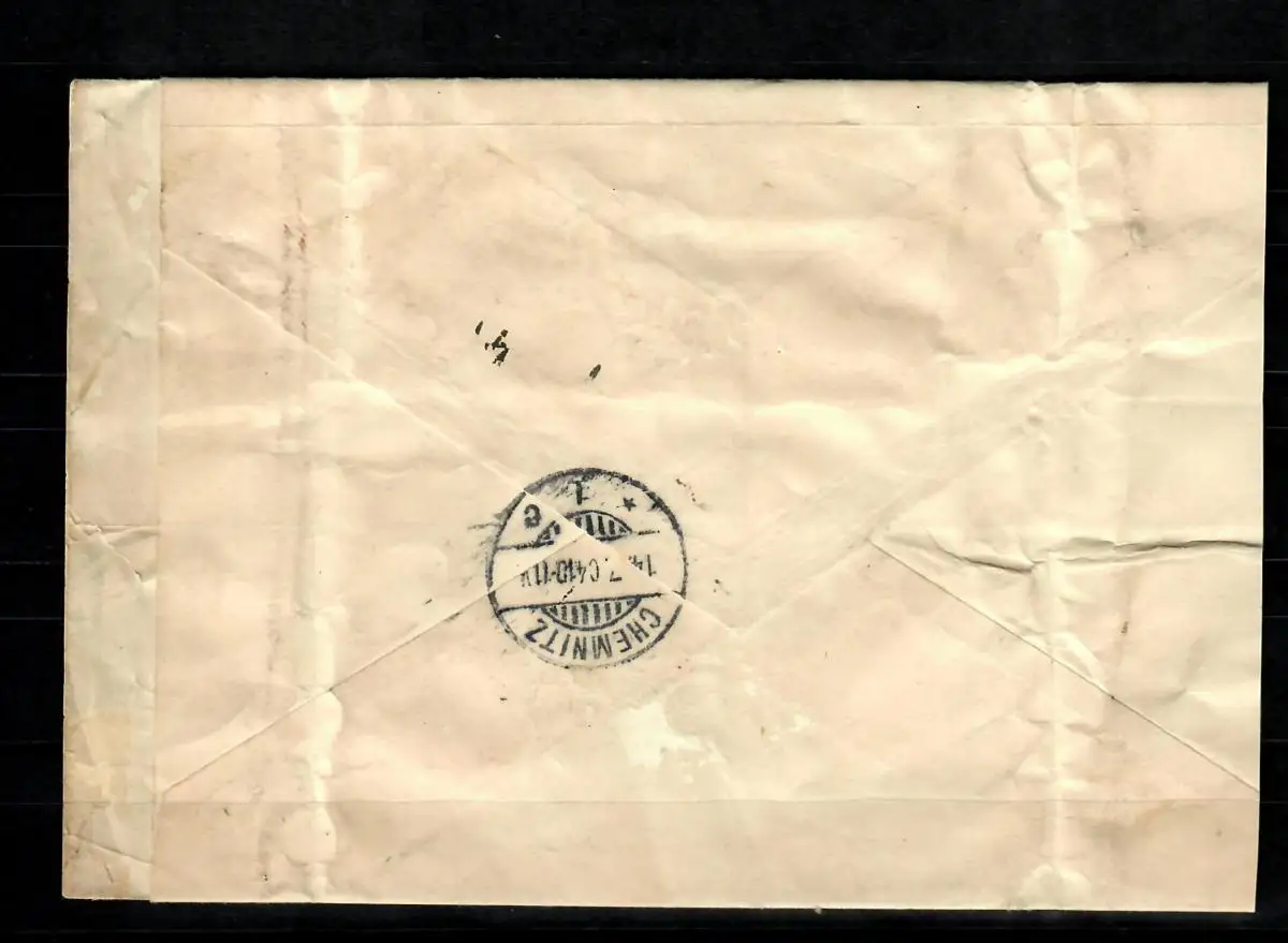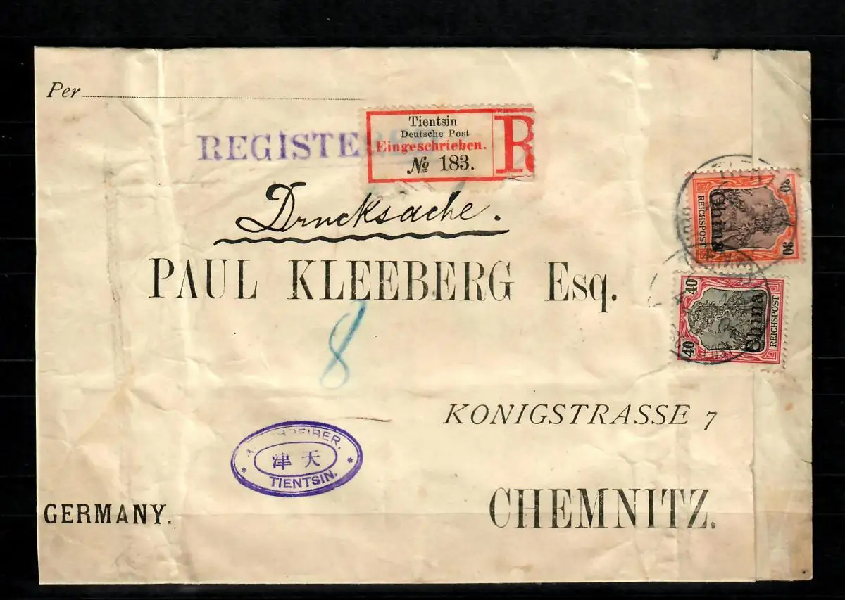 Dt. Post in China: Einschreiben Tientsin, Durcksachen-Streifband nach Chemnitz