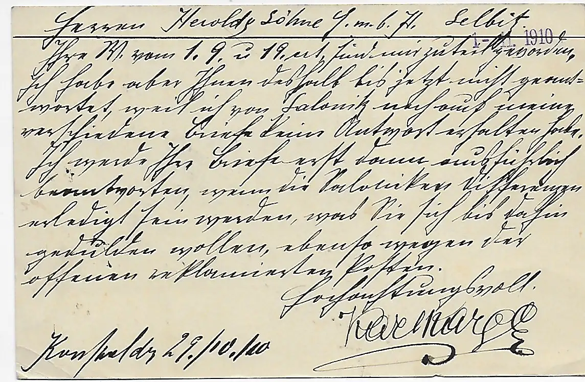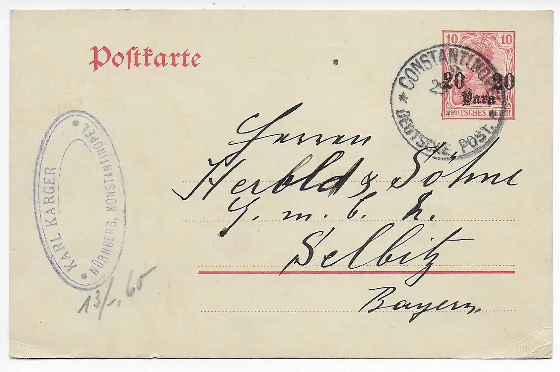 Dt. Post in der Türkei: Constantinople 1910 nach Selbitz