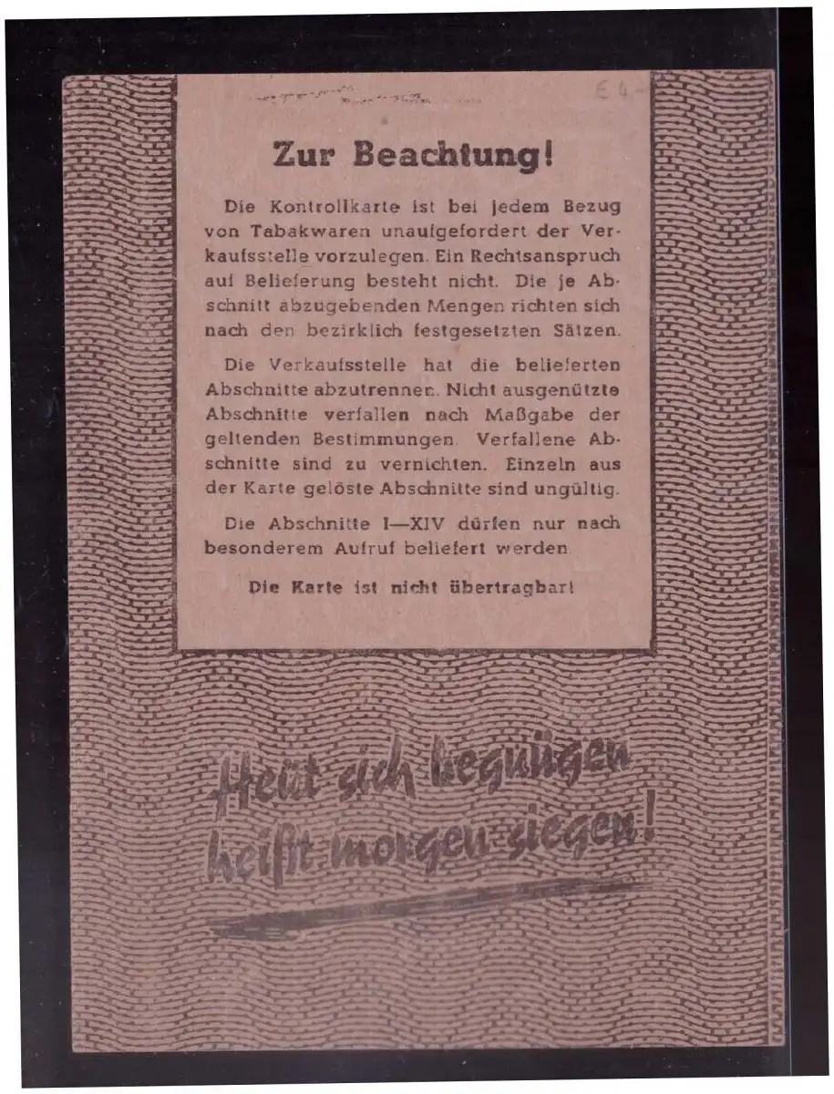 Dt- Reich (023616) Bezugskarte Einkauf von Tabakwaren für Frauen 1943, Landeswirtschaftsamt Wiesbaden