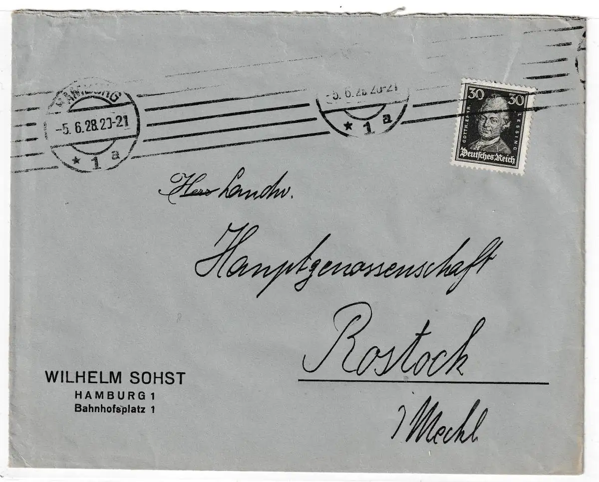 Dt. Reich 1928: Lessing (Nr. 394) als EF auf Fernbrief
