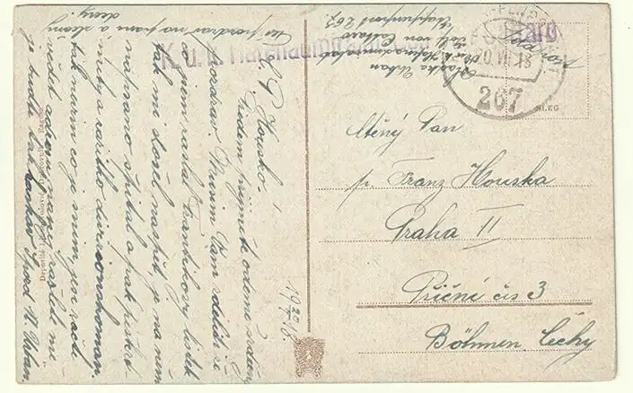 Bemerkungen: Gelaufen mit Stempel. Einzeiler violett - neben K. u. K.EPA/20.VII. 18/267 (Albanien- XIX. Korpskdo.