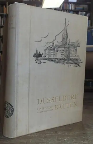 4° ( 26,7 x 19,5 cm). Beiger Originalganzleinenband mit goldgeprägten Titeln, schwarzgeprägtem Deckelbild, marmorierten Dreiseitenschnitt. Das helle Leinen leicht lichtgedunkelt und mit einem Fleck auf dem Buchrücken. Die Bezugspapiere in den Innengelenken gerissen, die Bindung jedoch fest. XI, 569 Seiten mit 856 s/w, teils ganzseitigen, zehn mehrfach ausfaltbaren Fotoabbildungen, Plänen, Grundrissen und Aufrissen. In hinterer Innendeckeltasche eine große, vielfach gefaltete, farbige Lithografie Stadtplan von Düsseldorf im Maßstab 1:10000 von Obergeometer Wallraff. Nach Seite 482 eine mehrfach gefaltete, farbige Lithographie über die Kanalisation von Düsseldorf. Gutes Exemplar