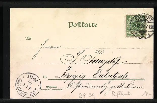 alte Ansichtskarte, gelaufen 1900, guter Zustand