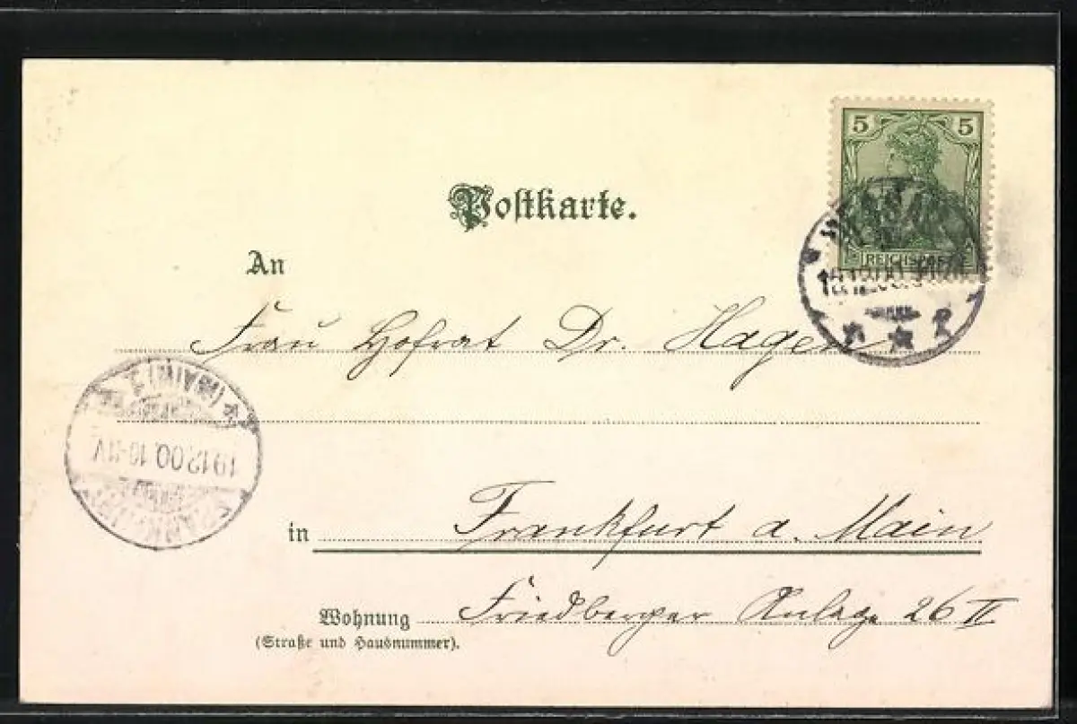 alte Ansichtskarte, gelaufen 1900, guter Zustand