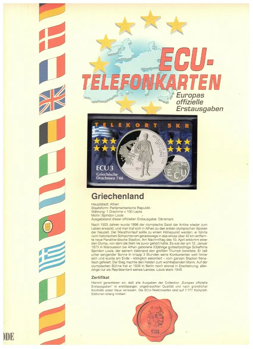 762 * ECU-TELEFONKARTE GRIECHENLAND * AUSGABE DÄNEMARK * POSTFRISCH **!!