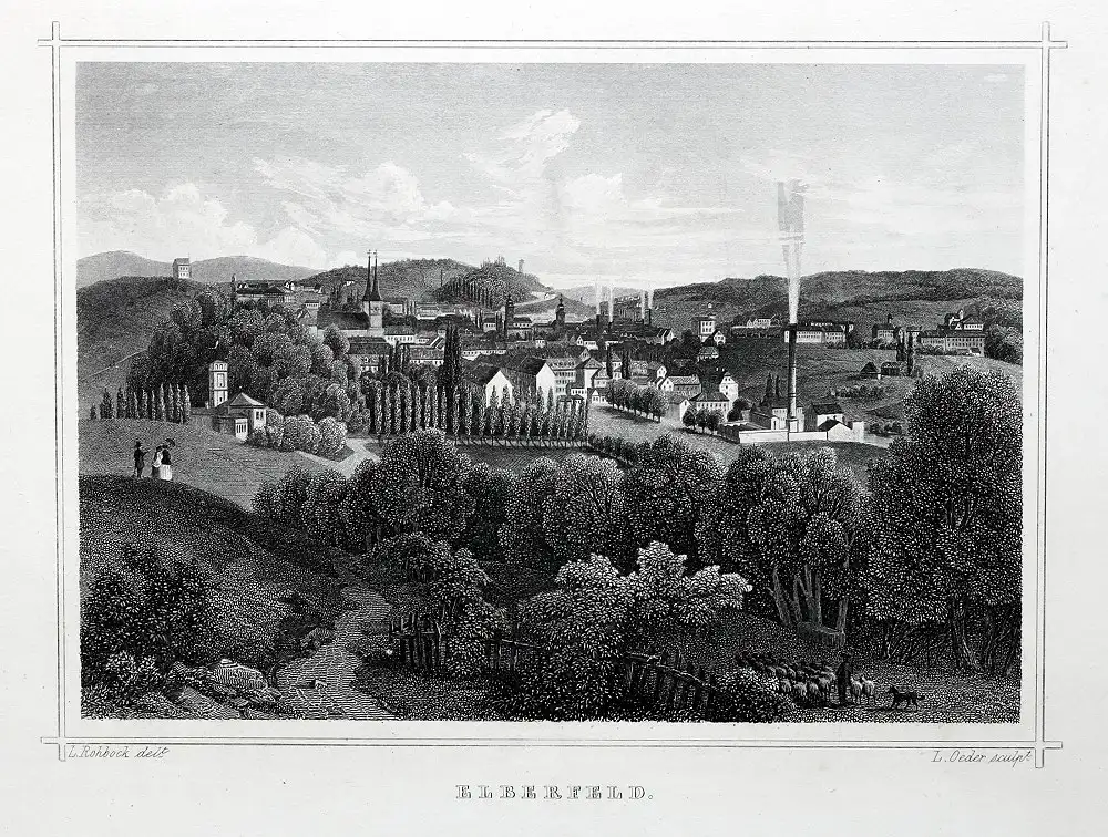 ELBERFELD: Gesamtansicht. Originaler Stahlstich Oeder um 1850