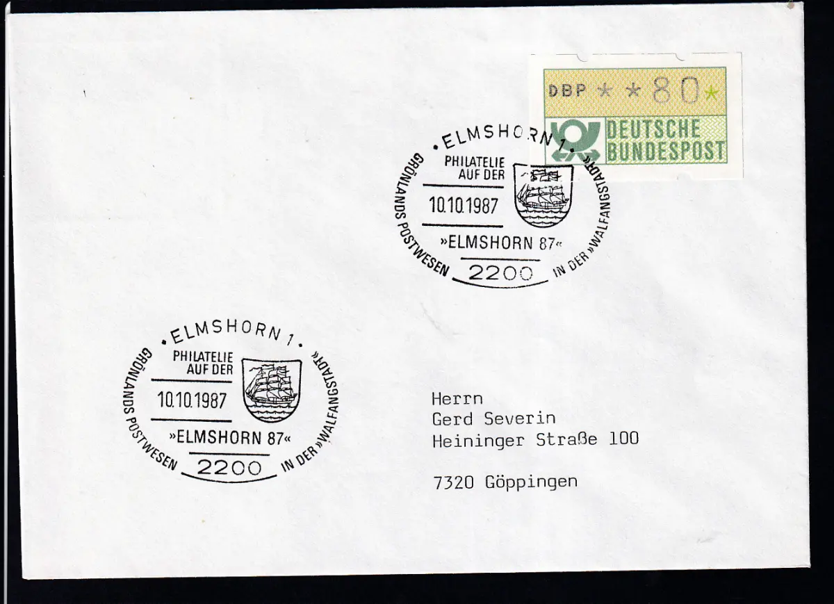 ELMSHORN 1 2200GRÖNLANDSPOSTVEREIN UIN DER >>WALFANGSTADTELMSHORN 87