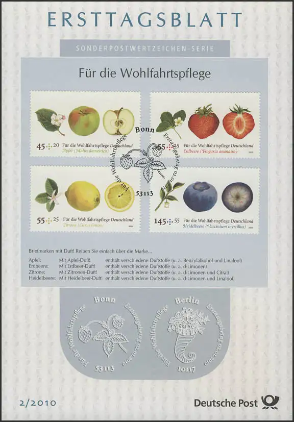 ETB 02/2010 Wohlfahrt, Obst, Apfel, Erdbeere, Zitrone, Heidelbeere, mit Duft