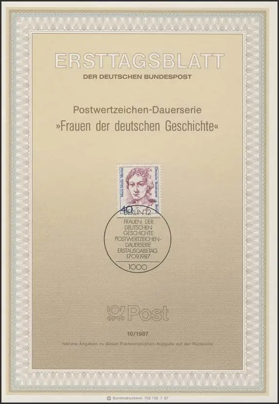 ETB 10/1987 Frauen, Maria Sibylla Merian, Malerin