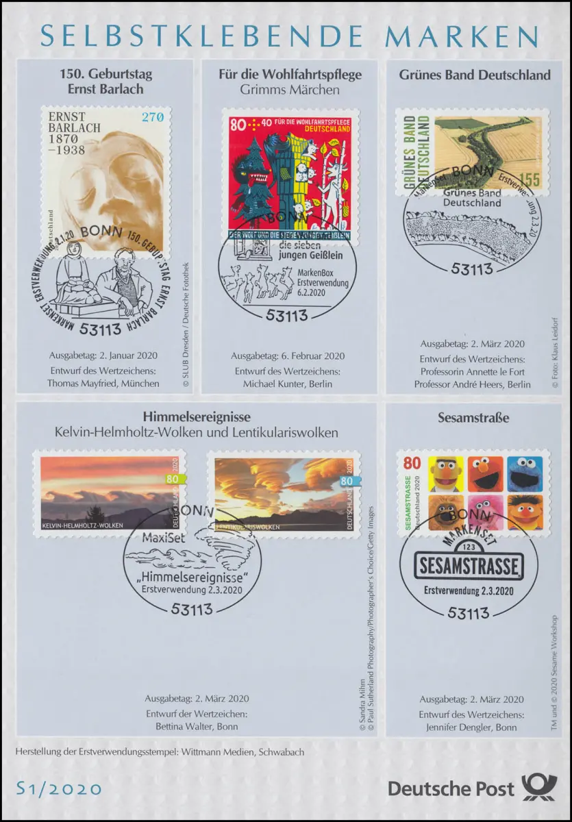 ETB S1/2020 SELBSTKLEBENDE: Siebengebirge, Beethoven, Sesamstraße, Barlach ...