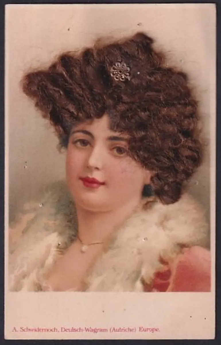 Echt-Haar-AK Porträt einer Dame mit dunkelbraunem Haar
