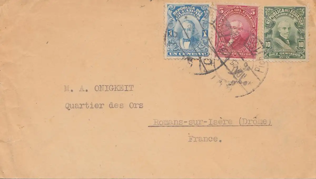 Ecuador: 1929: Quito to Romans-sur-Isère/France