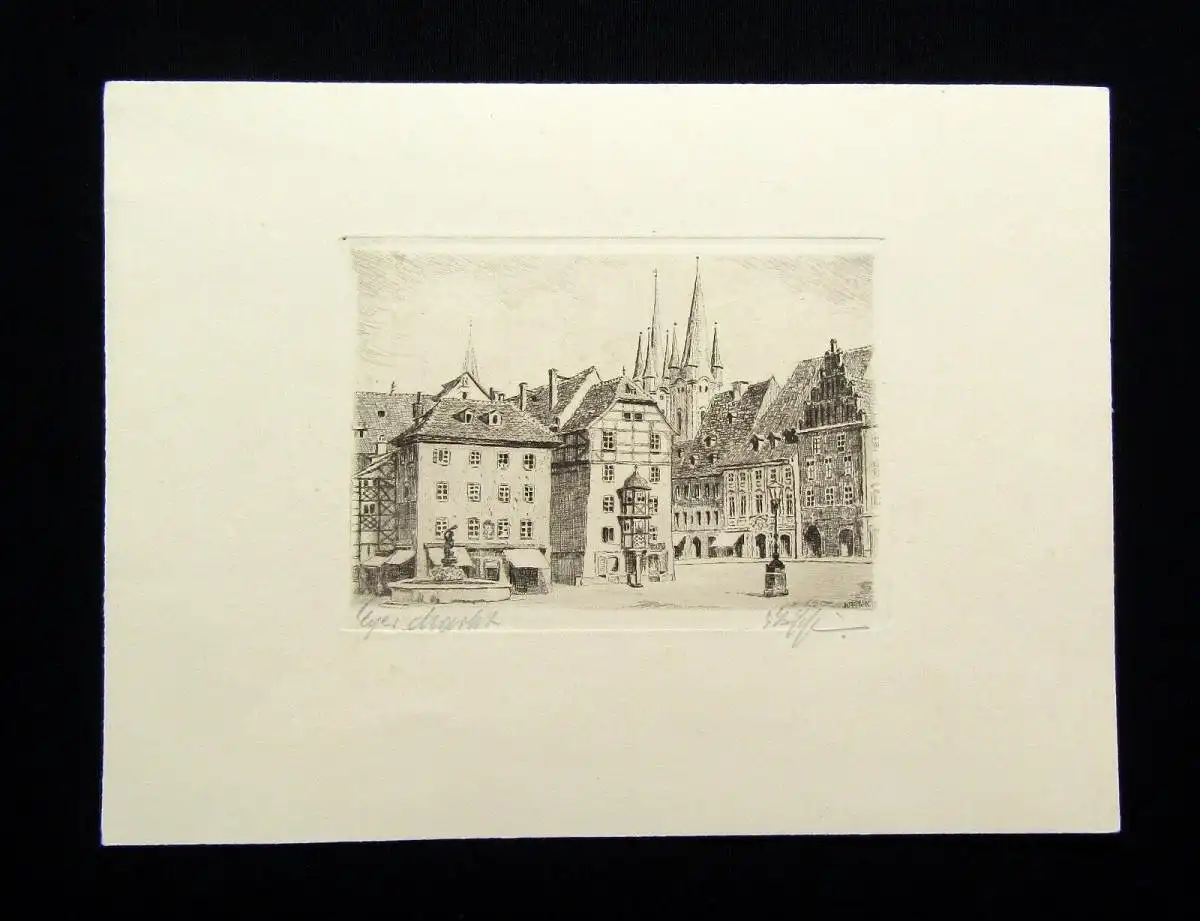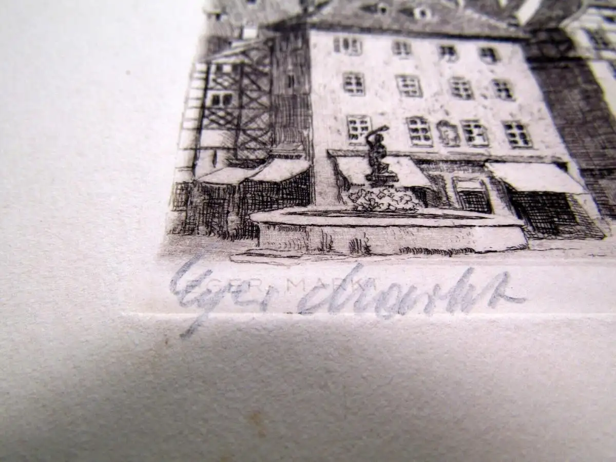 Eger/Cheb "Marktplatz" Radierung um 1920 signiert unten rechts Bezeichnung links