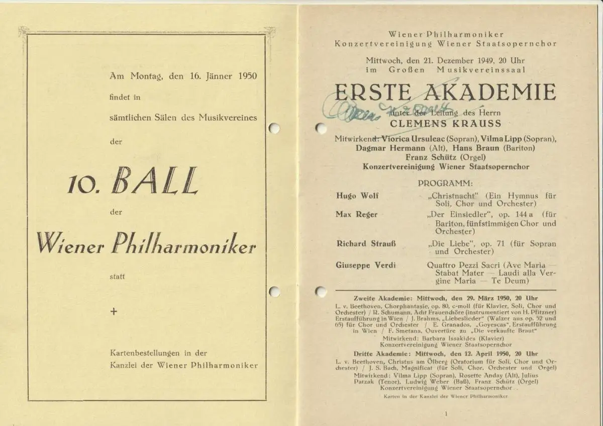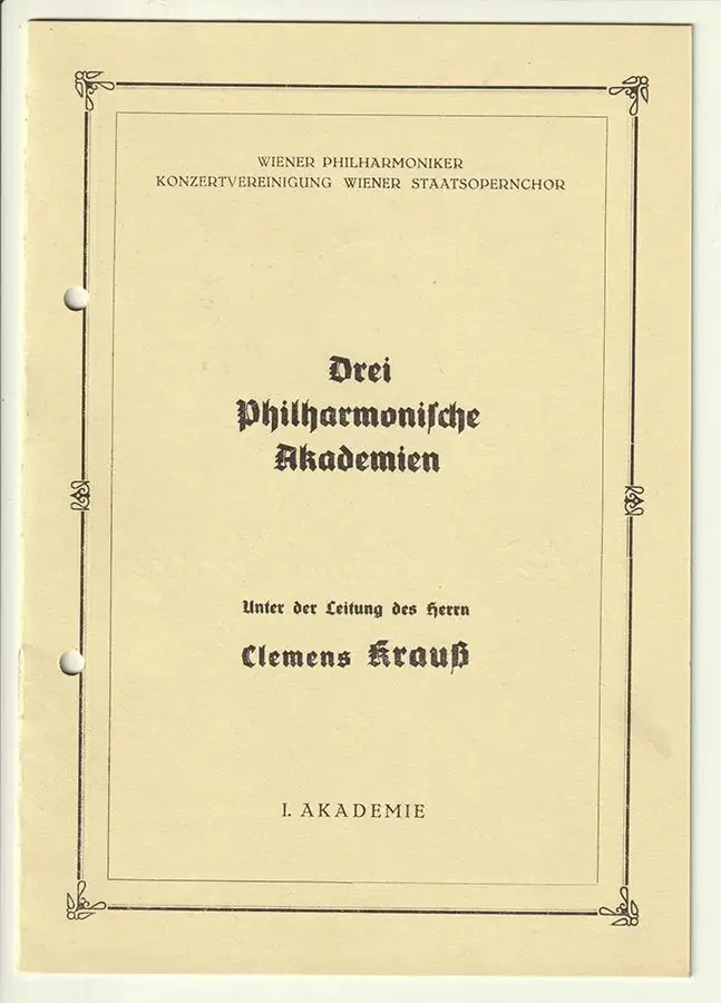 Bemerkungen: Titelblatt von Clemens Krauss (1893-1954) signiert. Krauss` Position gegenüber dem Nationasolzialismus gilt als umstritten, er arbeitete nach dem Krieg erst seit 1947 wieder an der Wiener Staatsoper. Er war in zweiter Ehe mit der Schauspielerin Viorica Ursuleac verheiratet.