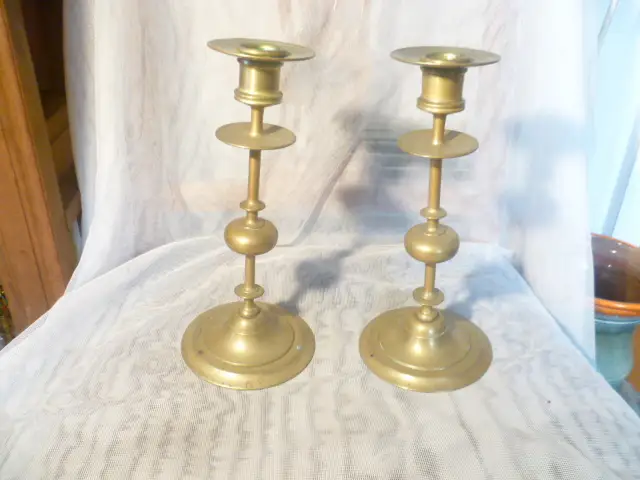 Ein seltenes Paar Tisch Kerzenständer Italien um 1800 museal Messing Bronze sehr guter originaler Erhaltungszustand