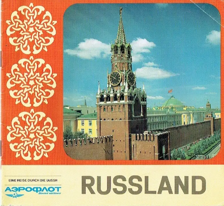guter bis sehr guter Zustand, geringe Gebrauchs- und Alterungsspuren: Vorderseite rechts oben mit größerem Eselsohr - Umschlag und Seiten teils etwas eselsohrig, Werbeprospekt in deutscher Sprache Die Russische Föderation erstreckt sich über zwei Erdteile, und zwar über Europa und Asien: von der Ostsee bis zum Stillen Ozean, von den blauen Karelischen Seen bis zu den feuerspeienden Vulkanen Kamtschatkas. Das Territorium Rußlands ist 1,6-mal größer als die Fläche Europas. Gegenwärtig leben in der RSFSR rund 140 Millionen Menschen. Vertreter von 100 Völkern und Völkerschaften sind in der Russischen Föderation ansässig, zu der 16 Autonomische Republiken, 6 Regionen und 49 Gebiete gehören. Einzigartig und vielgestaltig ist die Natur Rußlands. Weite Tiefebenen werden durch Hochplateaus, Berge durch Niederungen und die undurchdringliche Taiga durch schier endlose Steppen abgelöst. Tausende Flüsse tragen ihr Wasser zu den Küsten von zwölf Meeren, die die Grenzen der Republik umspülen. Auf dem Territorium der RSFSR befinden sich mehrere Klimazonen. Im Norden herrscht arktisches, im zentralen Teil der Republik gemäßigtes und in einigen südlichen Gebieten subtropisches Klima. In Jakutien, einer Region in Sibirien, können selbst im März noch Fröste von -70 Grad Celsius auftreten. Währenddessen in Sotschi an der Schwarzmeerküste bereits die Rosen blühen ...", Softcover, ca. 20 x 18,5, 16 Seiten mit 31 Bildern