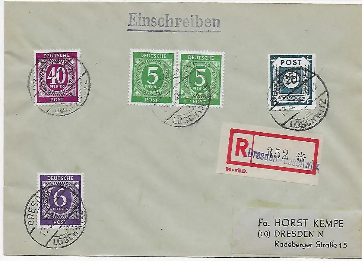 Einschreibebrief von Dresden-Loschwitz 1945, Kempe