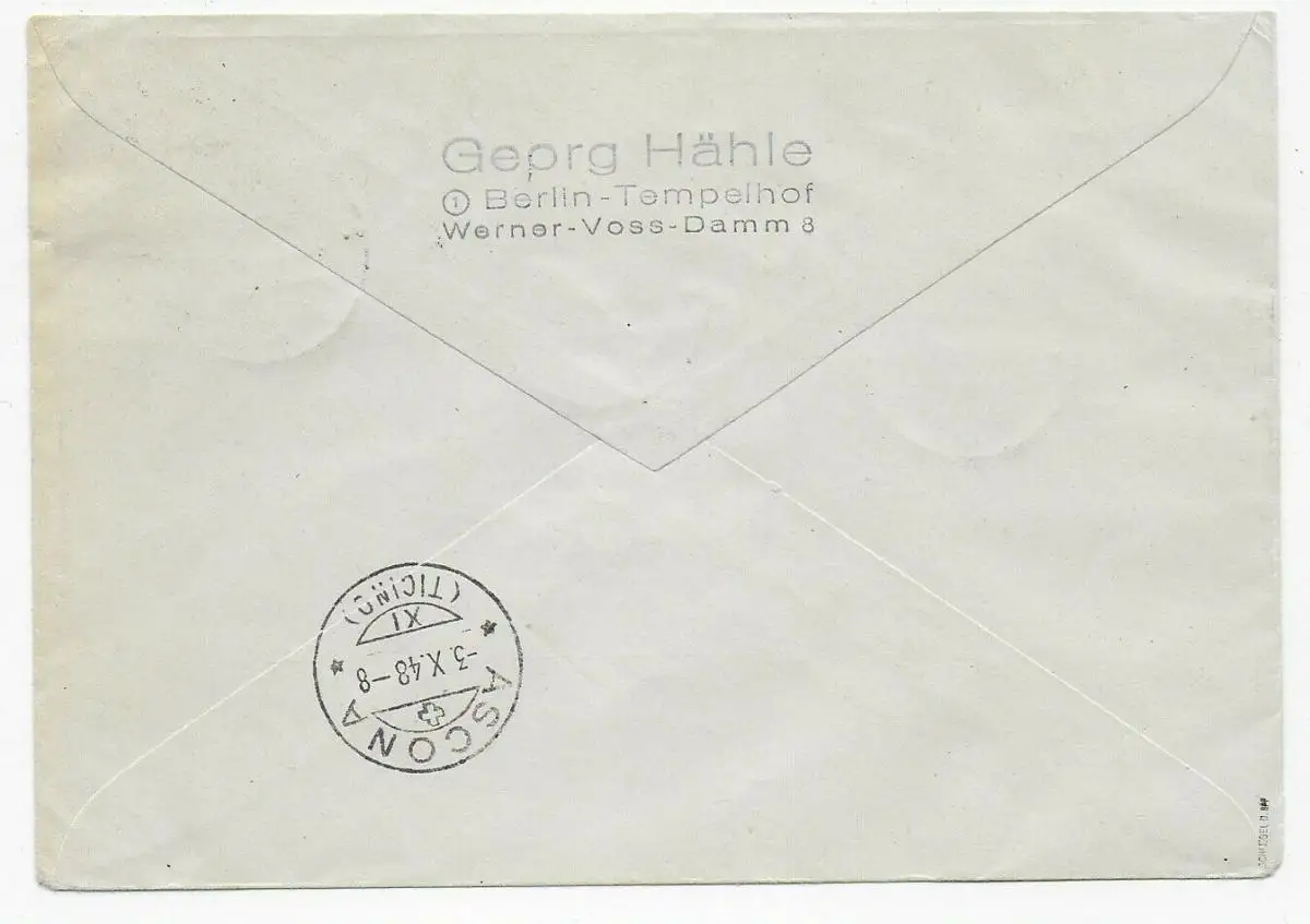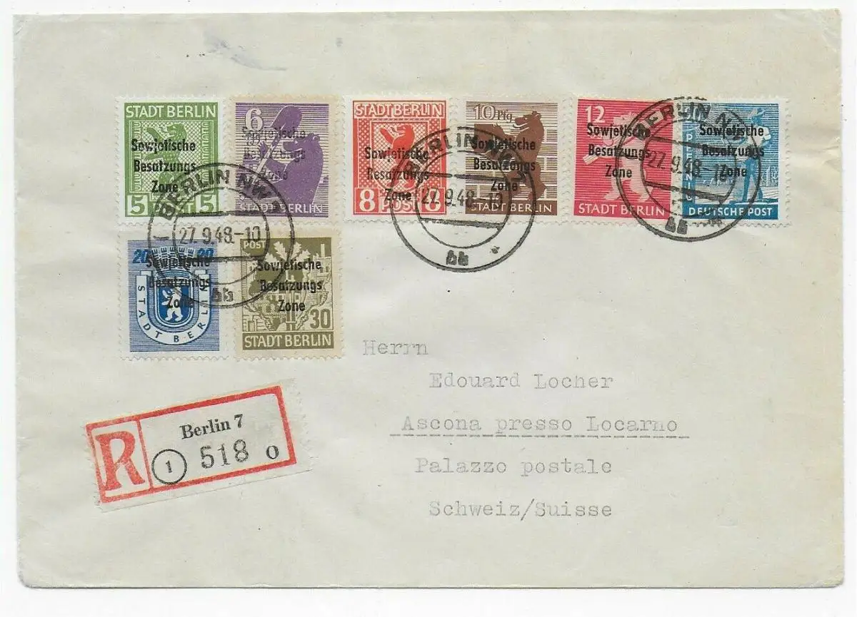 Einschreiben Berlin 1948 in die Schweiz, Ascona, BPP geprüft