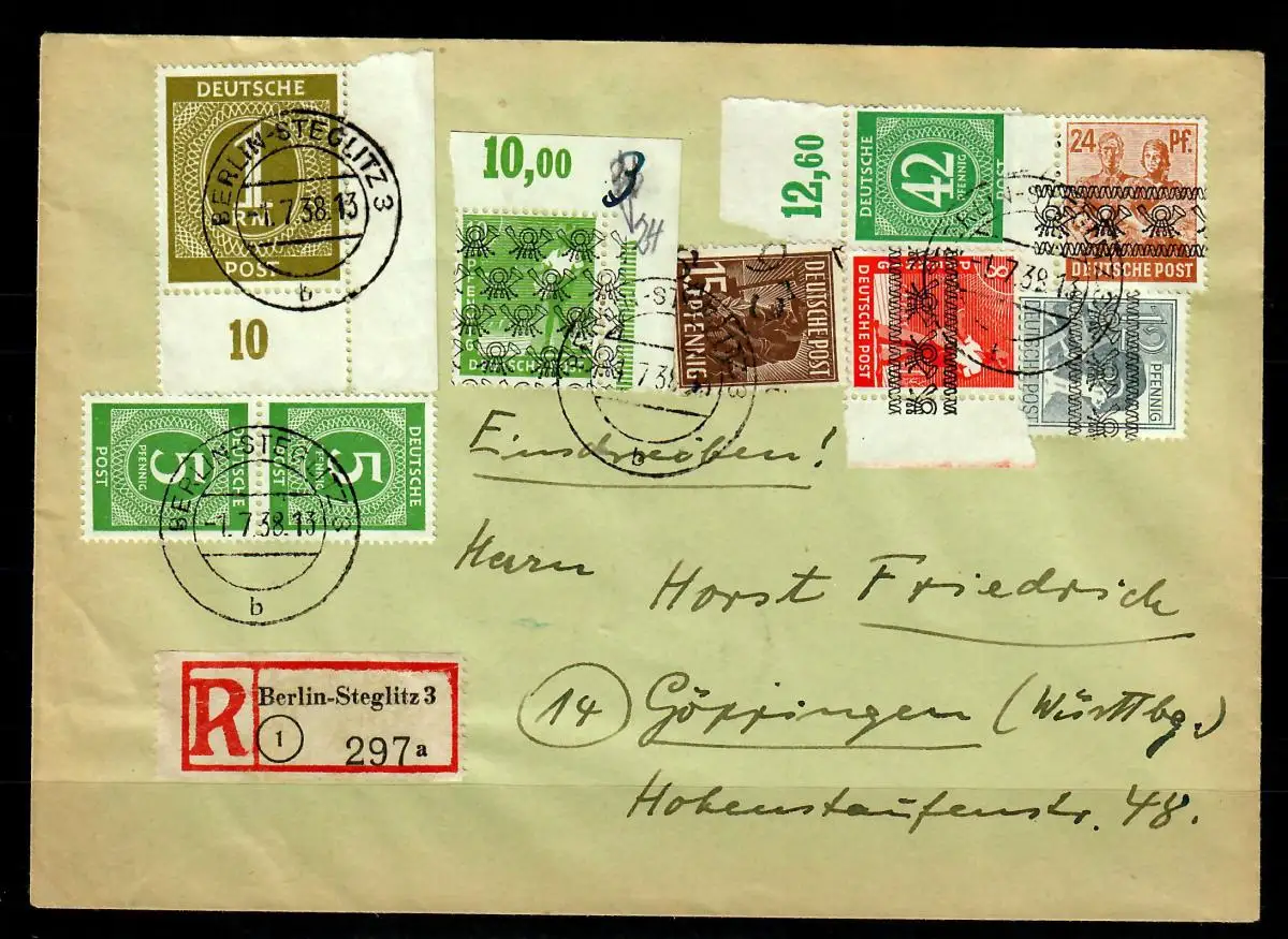 Einschreiben Berlin-Steglitz nach Göppingen,MiNr. 930P OR; Falsches Stempeldatum
