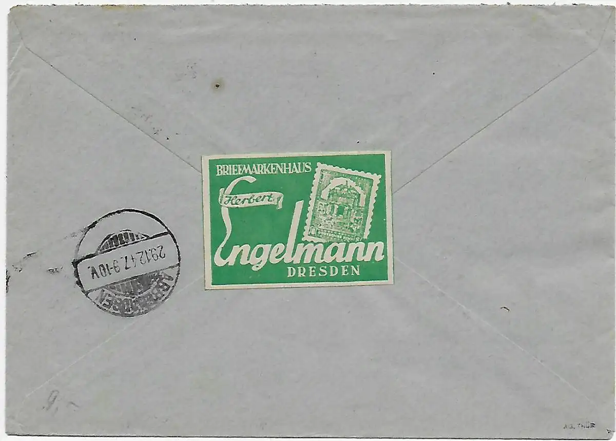 Einschreiben Dresden Messe nach Ellwürden, 1947