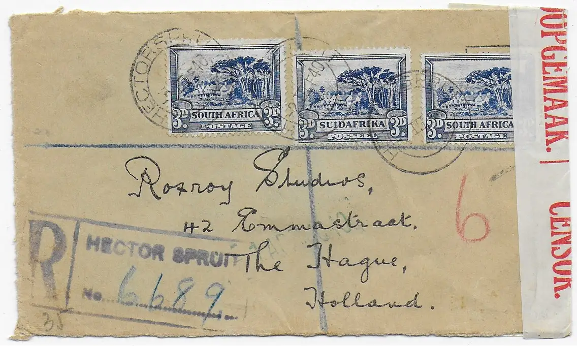 Einschreiben Hector Spru 1940 nach Den Haag, Holland