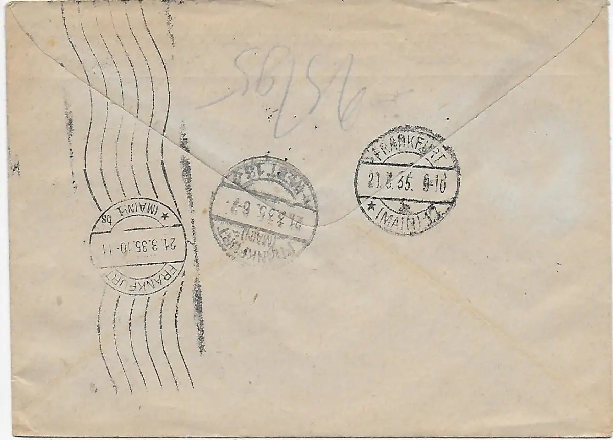 Einschreiben Luftpost Moskau 1935 nach Frankfurt