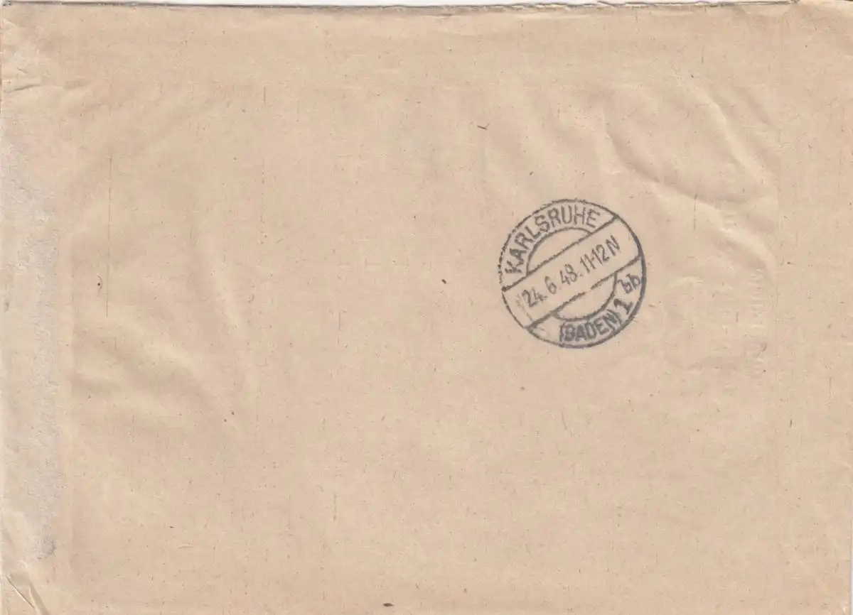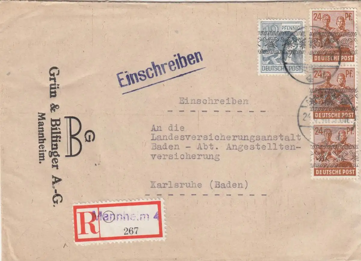 Einschreiben Mannheim 1948 nach Karlsruhe
