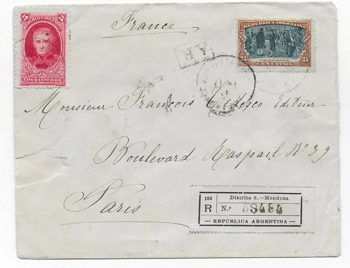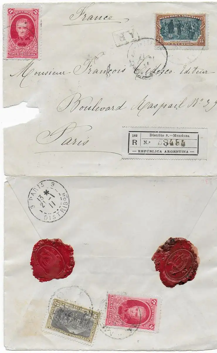 Einschreiben Mendoza nach Paris, 1911