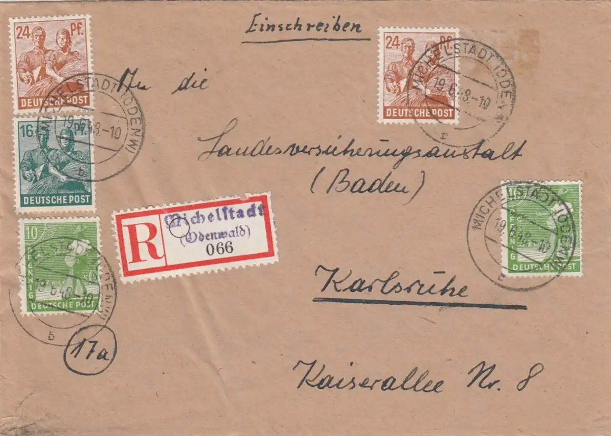 Einschreiben Michelstadt/Odenwald 1948 nach Karlsruhe